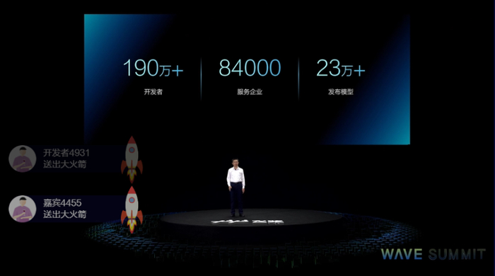 在本次峰会上,百度CTO王海峰开场即披露了一组飞桨数据:累计开发者数量已超过190万,服务企业数量达8.4万家,发布模型数量已超过23万个。