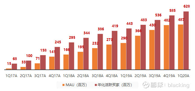 1.拼多多本季度的月度活跃用户(MAU)的增速突然下滑到590万左右,可谓历史最低。但活跃买家大增了4290万,这中间的巨大差异是如何造成的?