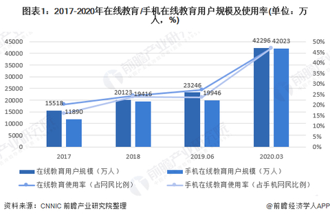 截至2020年3月,我国在线教育用户规模达4.23亿,较2018年底增长110.2%,占网民整体的46.8%。2020年初,全国大中小学校推迟开学,2.65亿在校生普遍转向线上课程,用户需求得到充分释放,在线教育应用呈现爆发式增长态势。