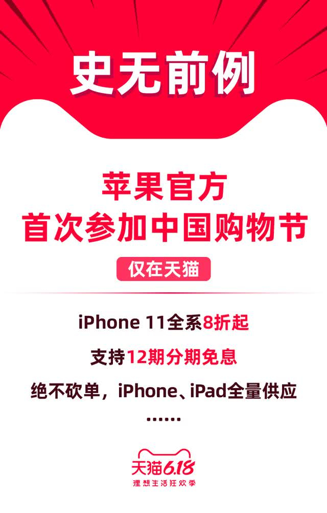 苹果首次官方大幅度降价!天猫618全场8折起