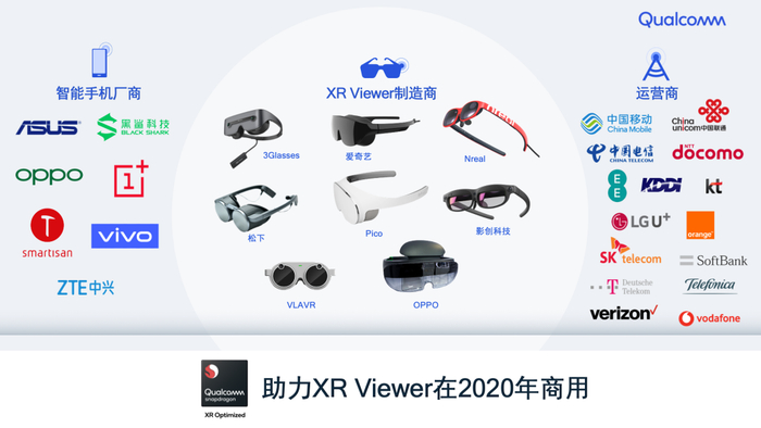 3Glasses、爱奇艺、Nreal、OPPO、松下、Pico和影创科技等多家XR Viewer制造商正在进行认证,通过认证之后,将在未来几个月内快速部署搭载骁龙移动平台的设备。消费者和用户可通过带有“Qualcomm XR Optimized”标识,一目了然地掌握智能手机和XR Viewer的兼容适配性能。目前,手机厂商包括华硕、黑鲨、一加、OPPO、锤子科技、vivo和中兴,计划通过支持Viewer的5G智能手机为用户提供全新XR体验,更多OEM厂商也将陆续加入。