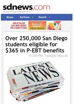△《圣地亚哥新闻》称,在校内享受免费或优惠校餐的学生,都可获得365美元的一次性补助