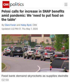 美国众议院议长佩洛西日前表示,“营养补充援助计划”可能会加剧美国政府的债务,但即使如此,她仍然认为,债务不能成为停止发放救助资金或中断补助的理由。