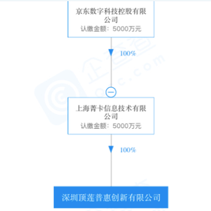 据“大鹅来啦”公众号资料显示,其隶属于深圳顶莲普惠创新有限公司(以下简称:顶莲普惠),企查查显示,顶莲普惠由京东数科旗下上海菁卡信息技术有限公司100%控股。