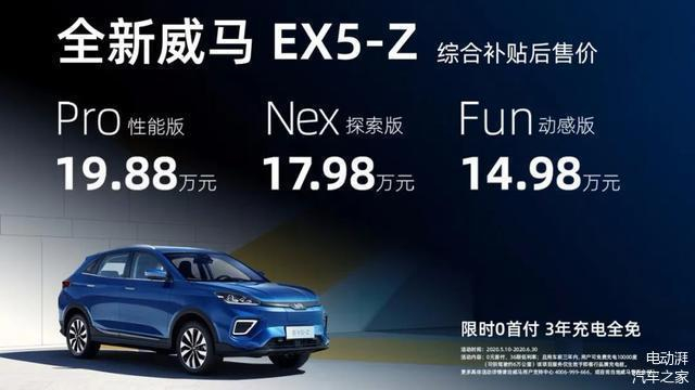 其中,威马EX5-Z在设计方面加入了新的元素,新车换上了双 “Z” 字型动感前脸,同时新车在智能化和舒适性配置方面的表现也可圈可点。新车搭载全天候7 x 24小时在线的AI小威语音管家,实现电话通讯、地图导航、音乐娱乐等9大模块、120项驾驶场景功能的语音控制,真正做到说句话,全搞定!手机蓝牙钥匙、智能场景式动态logo、车外语音交互系统、Hands Free感应式电动尾门,更为用户打造由内而外的全场景式智能交互体验。同时该车还搭载了L2级Living Pilot智行驾驶辅助系统。续航方面,提供400km、520km等两个版本。