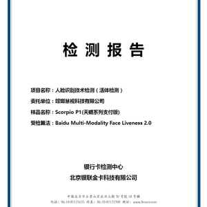 BCTC人脸识别产品类活体检测增强级检测报告(认证书)