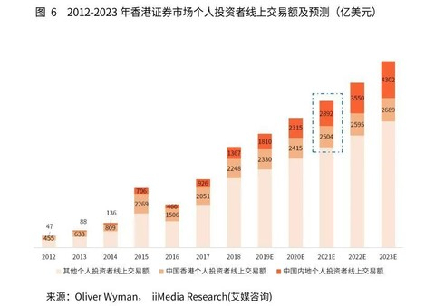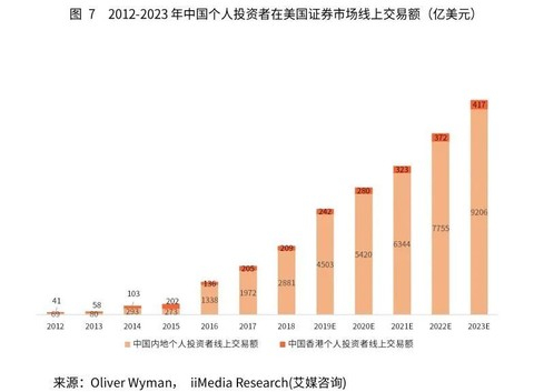 中国内地投资者在美国证券市场的线上交易规模增长迅速。预计未来几年,中国内地个人投资者在美国证券市场线上交易额仍将快速增长,至2023年有望接近1万亿美元。