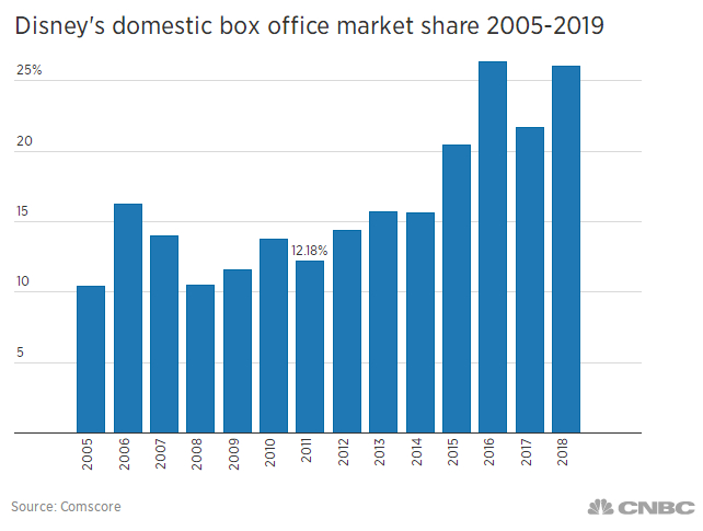 在鲍勃·伊格尔(Bob Iger)的带领下,迪士尼在2019年对全球票房的统治格局已经持续了近20年。