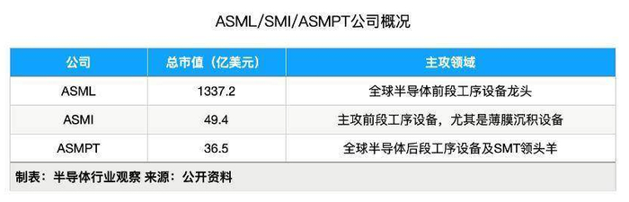 在研究全球半导体设备行业时,我们很难忽略这样三家奇特的公司-ASML、ASMI 以及 ASMPT,他们名称中都含有 ASM 且均为上市公司,前两者的总部都在荷兰。