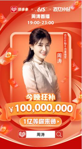 知名主持人周涛首秀“拼多多618直播” 送亿元福利荐品牌全网底价