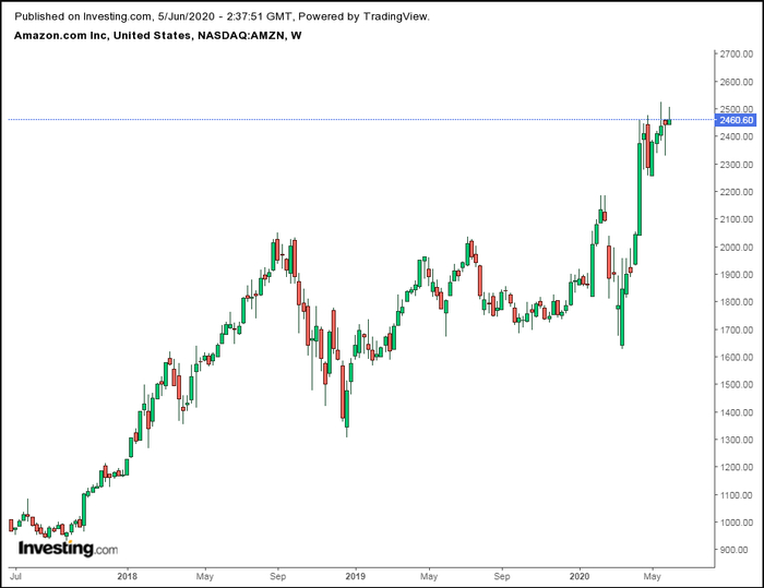 亚马逊(NASDAQ:AMZN)很少让深爱它的投资者失望。5月21日,受益于消费者转向网上购物,亚马逊股价创2525美元的新高。