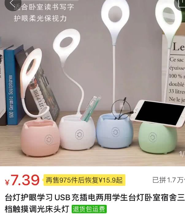 比如拼多多的市场铁律:低价就是王道。谁能把价格拉下来,谁就能获得更多消费者的青睐,就像平常卖30多块的台灯,拼多多只卖7.39块。