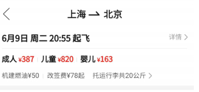 旅界君随手搜索6月9日上海—北京的机票,发现在拼多多上“儿童票”价格竟然是“成人票”的2倍多,不知道以“低价”著称的拼多多如何能让该App精于算计的客群掏钱买票?