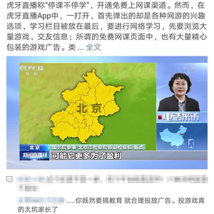 今年2月初,虎牙直播称“停课不停学”,开通免费上网课渠道。然而,网课后来变成了网游。