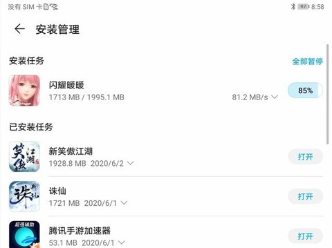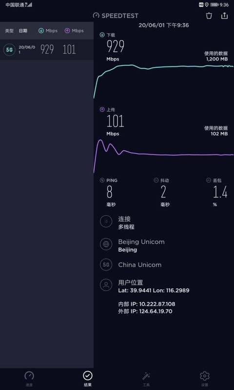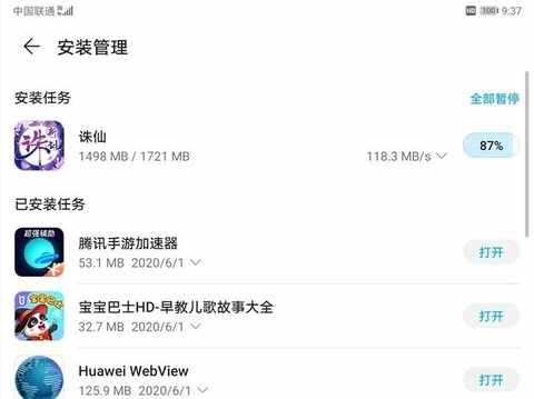 首先是5G测试。经过实测,荣耀平板V6的下载速度能够达到929Mbps,网速成绩直追运营商限速上限。同时,上行网速也达到了101Mbps的速度,让荣耀平板V6不论是下载还是上传文件都能获得更快的网速体验。除了SpeedTest,为了测试平板在实际生活过程中的5G网络表现,我们还进行了游戏下载测试。在荣耀平板V6自带的应用商店中速度能够轻松飙到100+MB/s,在线看4K高清视频都没有问题。