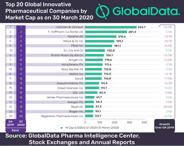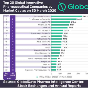 2020年Global Data 发布了TOP20制药企业的排名,刷新医药人对企业排名的认知。