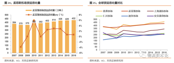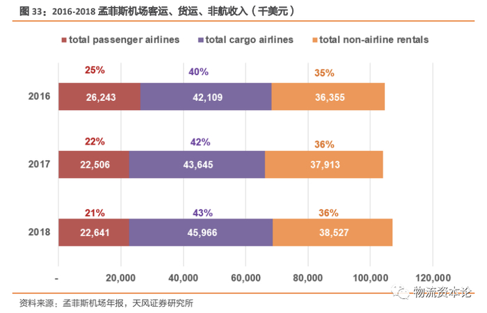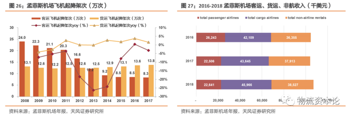 孟菲斯机场是一个典型的货运机场。2017 财年货运飞机起降 13.8 万架次,客运飞机起降 8.3 万架次;而相应地,来自货运业务的收入占公司收入比重最高。