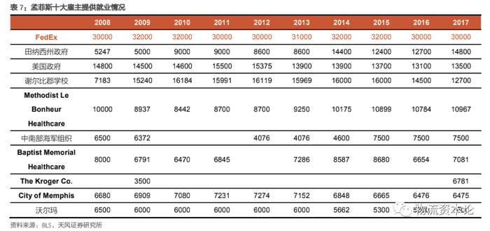 从企业提供就业的角度看,联邦快递为孟菲斯提供了30000个就业机会,是孟菲斯市的最大雇主。