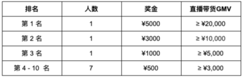 1、Top 10带货达人现金奖励:通过直播间购物车功能插入任意商品卡片,带来的有效订单总金额排名top 10的知友可以获得现金奖励。第一名的直播带货GMV需不小于2万元。