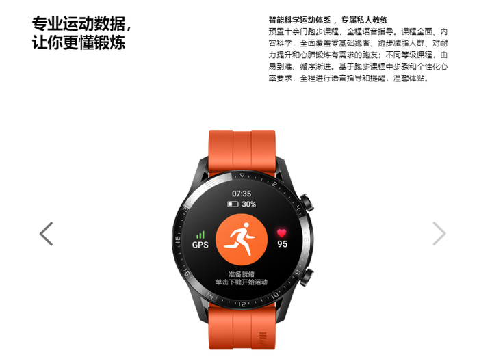 华为 Watch GT 的运动模式除了常见的 15 种以外,还新增至 100 种训练模式,这意味着用户在运动时不仅可以对综合的情况进行记录,还能对此运动的具体环节进行训练,是非常有针对性的。例如 10 余门跑步课程,从入门到进阶,全程语音指导,定制专属训练计划和效果的评估。相反 Apple Watch Series5 和佳明fēnix 5 想要类似的效果就需要额外的 APP 才能体验到。