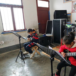 顾亚把孩子们弹吉他的画面发到朋友圈,音乐圈的好友帮助联系了公益组织,学校获得一些捐赠来的乐器。