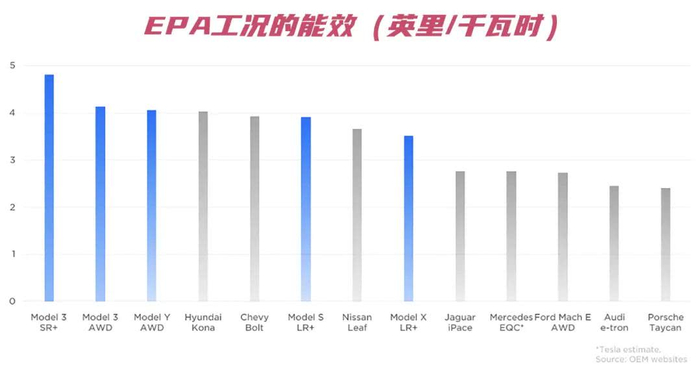 4.特斯拉拥有电动汽车中的最高能效