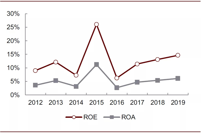 图表: 2012-2019年亿滋国际ROE与ROA情况