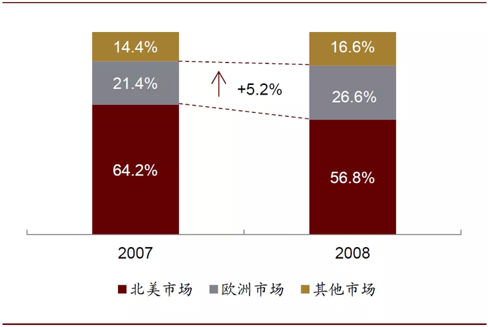 图表: 2007-2008年卡夫食品全球收入区域分布