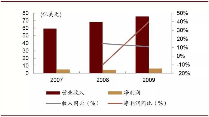 图表: 2007-2009年吉百利收入利润情况