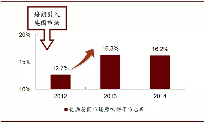 图表: 焙朗引入英国市场后原味饼干市占率变化