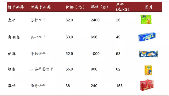 图表: 亿滋中国主要饼干品牌、产品及价格对比(2020.6)