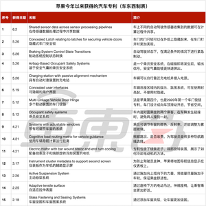 ▲2019年至今苹果获得的汽车专利