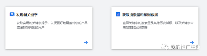 目前提供了两种功能“发现新关键字”:“获取搜索量和预测数据”。