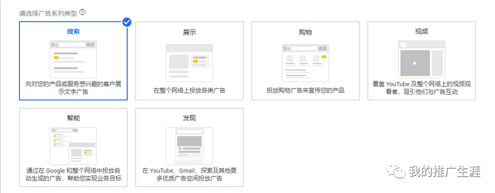 然后选择广告类型“搜索”,目前全世界除了少数国家之外,在绝大多数国家谷歌都是占据了绝对的市场份额。