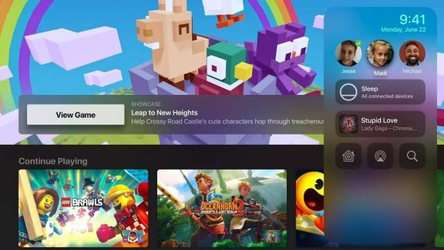 首先新一代tvOS允许用户通过新的控制中心直接控制HomeKit配件,整体的界面风格类似于iOS和iPadOS上的菜单界面。同时作为新UI界面升级的一部分,苹果还为Apple TV 加入了多用户支持。