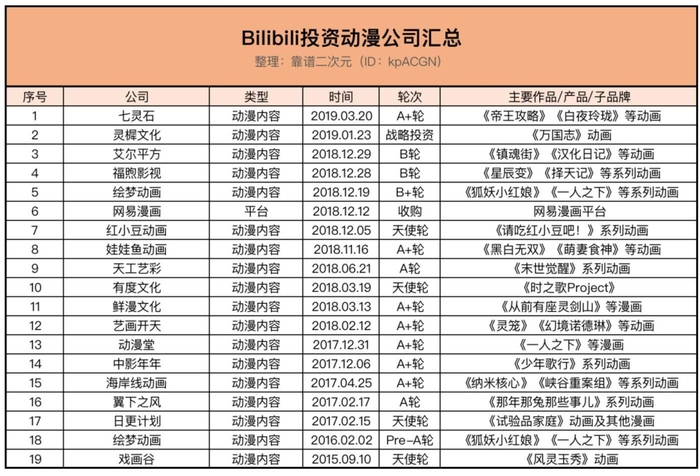 而成立了三年的bilibili国创区,更是为行业做出了惊人贡献。根据靠谱二次元统计,近几年B站投资了近20家动漫内容公司,超90部国产动画作品,还不包括播放版权采购、投资相关公司、营销费用等等支出。