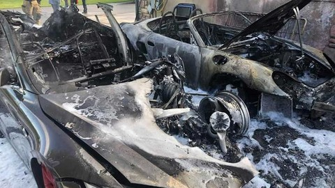 发生在美国犹他州凯斯维尔的特斯拉Model S自燃,旁边停放的是保时捷Boxster