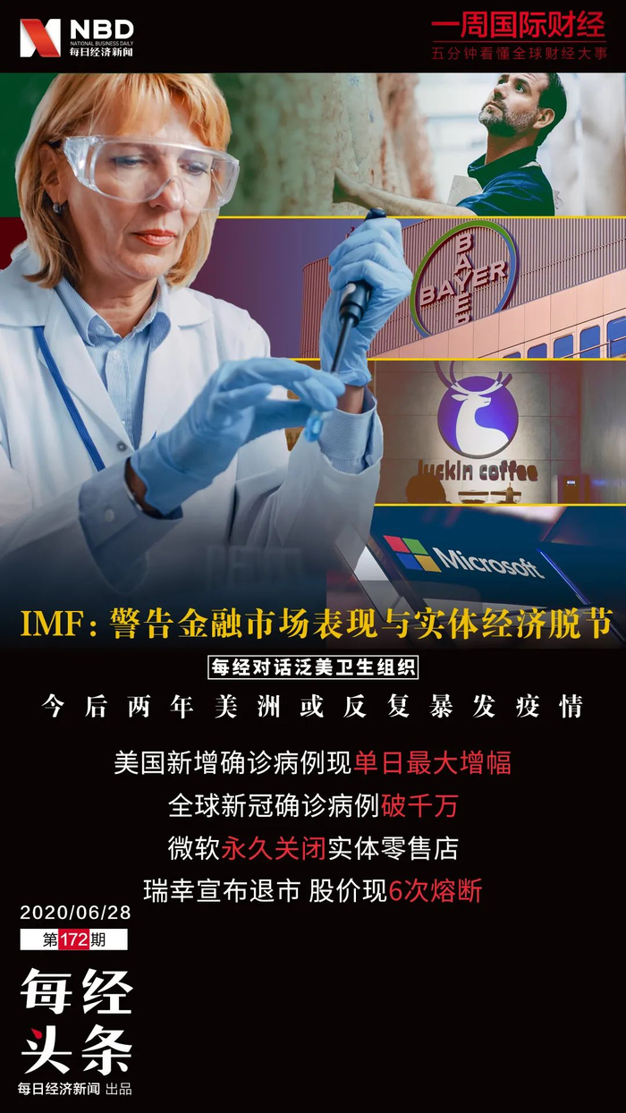 全球新冠确诊数破千万;IMF警告金融市场表现与实体经济脱节;微软永久关闭实体零售店;瑞幸宣布退市股价现6次熔断|一周国际财经