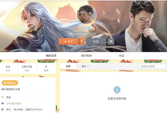 其同时提到,平台头部主播剑仙,成为平台提前解散的关键人物。剑仙是前王者荣耀顶尖选手,职业玩家,被王者荣耀官方评选为“国服第一李白”,此前其微博粉丝达到230万。