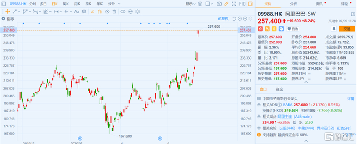 今日港股阿里巴巴股价直接高开8.24%,总市值55242.6亿元港元,稳坐港股市场市值一哥地位!