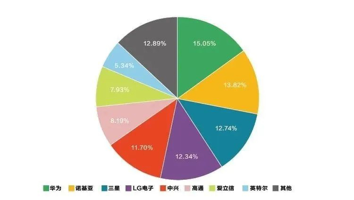图2:2019年4月全球各大通信企业5G标准必要专利申请量占比