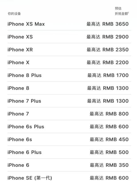 但随着新iPhone的临近,这个本来就没有多少竞争力的iPhone折抵现在却变得更“打发人”了:7月11日,苹果正式调低了Apple Store折抵价格,以中国内地Apple Store为例,曾经最高折抵3750元的iPhone XS Max,现在“贬值”了100元,iPhone 8 Plus等旧机型“贬值”更为严重,其中“贬值”最严重的为iPhone XS,从曾经的高位3450元变到现在的2900元,几乎打了84折。