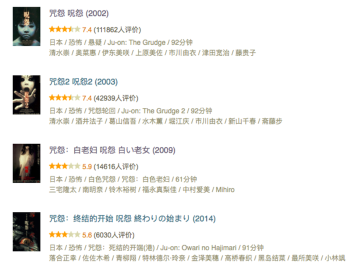 实际上,日本虽然有众多恐怖题材IP,比如“午夜凶铃”、“富江”、“鬼来电”,但改编成影视作品后评分都不高,几乎都没有超过7.5,这也可见这一题材的拍摄难度以及IP的性价比不高等问题。
