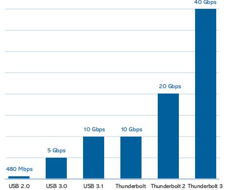 可能部分接触笔记本的用户会好奇,有些笔记本上的雷电接口在外观上貌似和Type-C接口没什么差距,那为什么要另外起个“雷电”的名字呢?其实两者的差距还是很大的,在传输协议上两者分别与不同的传输协议配对,分别为雷电3(Thunderbolt 3)和 USB 3.2 Gen 2。