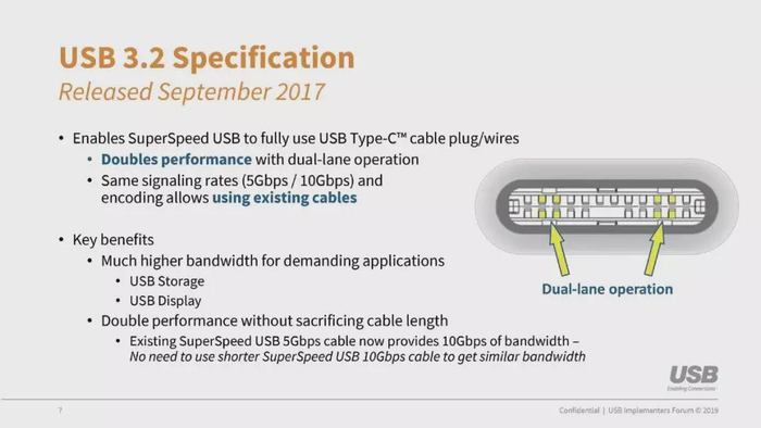 两个通道同时开启的操作能够使得USB 3.2 Gen 2x2协议能够达到每个通道10Gbps的最高传输速度,再加上采用128b/132b编码,实际数据速度可以达到约2500MB/s,相比现在的USB 3.2 Gen 2直接翻倍。其最大的意义还是在于它将完全淘汰传统的Micro-USB和USB Type-A接口,只剩下只剩下USB Type-C作为唯一接口。换句话说,一旦USB 3.2 Gen 2x2正式推开,届时无论是电脑还是手机,所有的USB接口都只会剩下唯一的一种规范。