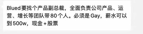 网传Blued500万招人仅限gay 招聘网站显示其正在招产品VP