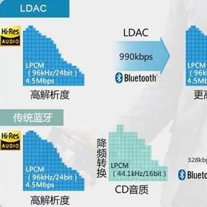 LDAC是由索尼开发的音频编解码技术,于2015年发布(对,已经有五年时间了),它可以通过蓝牙传输96KHz、24bit的音频格式,速度最高可达990kbps。另外,LDAC可传输约3倍于普通蓝牙音频【指采用A2DP协议,SBC编码】(328Kbps,44.1KHz)的信息量。