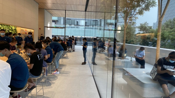 从小雷拍摄的照片可以看出,普通的工作日下午,三里屯的Apple Store的人均空间会更大,拥挤程度要好过西单店不少。虽然由于疫情原因,苹果也在严格把控客流量的进出,但只要你想来,并不需要等很久。