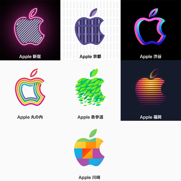 以日本近两年新增的Apple Store为例,你可以从Logo设计上就看到苹果设计的用心——新宿的现代霓虹,京都的轻质木架和特殊纸张、涉谷的年轻潮流等地区文化,都与Apple logo进行了完美融合,并且苹果都为这些logo制作了一个小短片。
