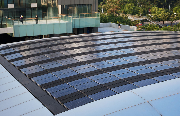 此次的Apple Store,在环保上也花了大力气——这是中国首家全部使用可再生能源的店铺,在屋顶上配备了太阳能阵列,贯彻了苹果的环保理念。